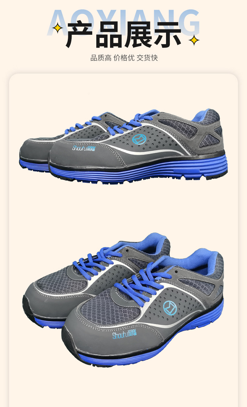 奧翔勞保鞋價(jià)格實(shí)惠,鞋子很舒服,很滿意。 外觀材質(zhì):鞋子外觀看起來(lái)不笨重很好看,而且顏色和圖片上一致。 商品品質(zhì):鞋子材質(zhì)穿上很軟,很舒服,而且也不捂腳。勞保鞋子還挺時(shí)尚,感謝老板送了4雙鞋墊,天氣熱了,我這旱鴨子腳??,不曉得會(huì)不會(huì)熏暈室友哈!